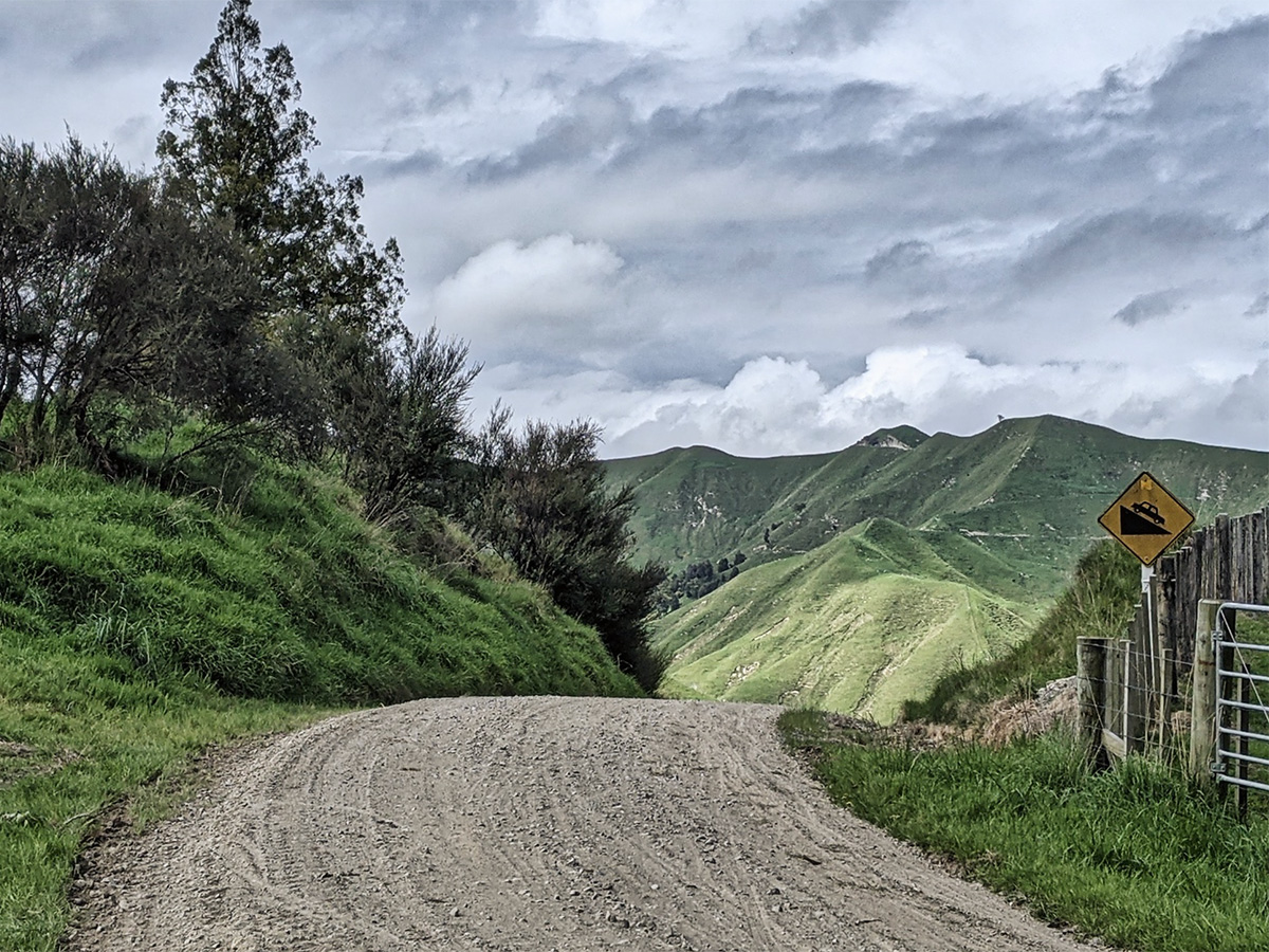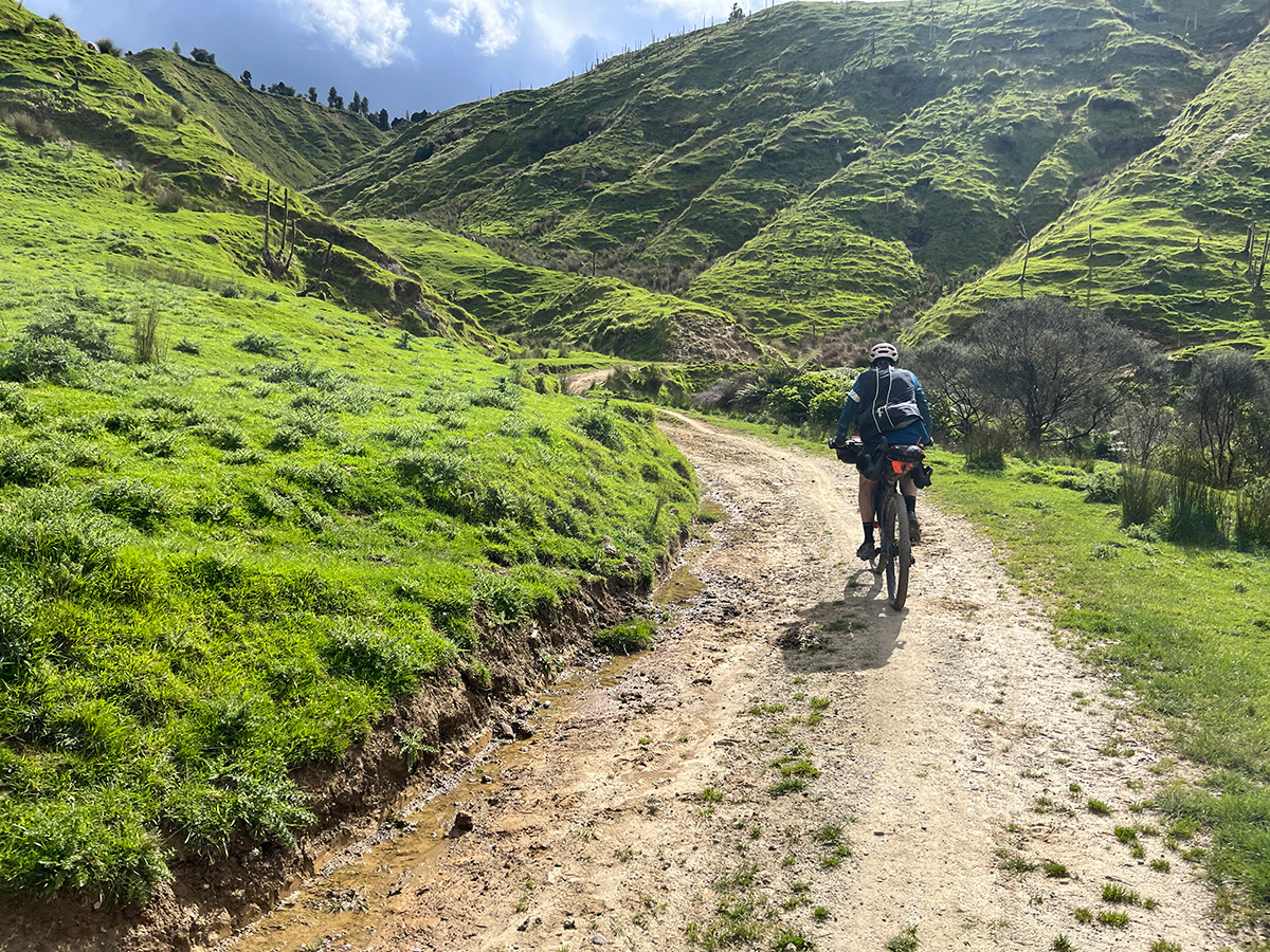 The route winds through quiet country roads, rugged gravel backroads, forest tracks, and remote private farm trails, linking parts of the iconic Mountains to Sea Trail and showcasing the wild beauty and raw backcountry character of the lower North Island.